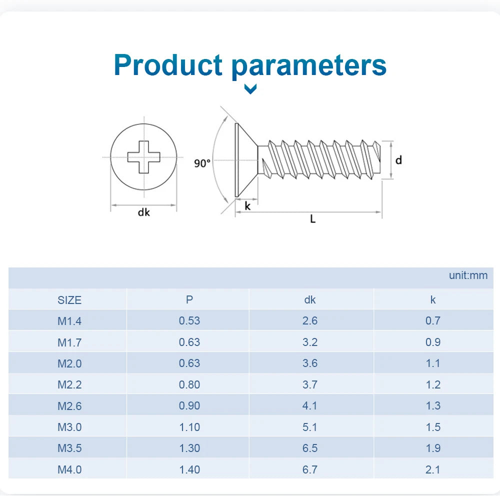 Specification: M1.2 M1.4 M1.7 M2 M2.3 M2.6 M3 M4