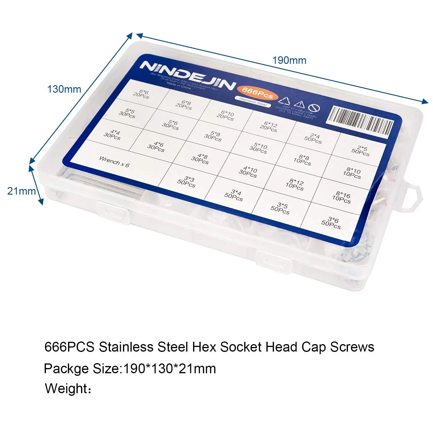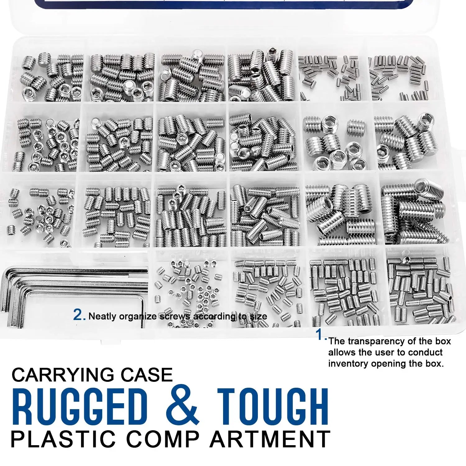 666pcs Hexagon Socket Flat Point Set Screw Stainless Steel Grub Screw Kit M2 M3 M4 M5 M6 M8 Headless Screw Assortment Kit