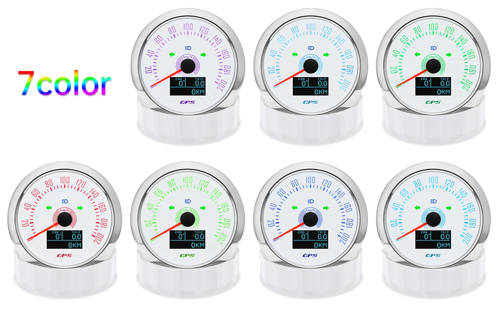 85mn Digital Odometer 0-160 MPH Odometer Gauge GPS Speedometer 7 Color With Antenna For Motorcycle Boat Car Speed Trip ODO COG 9-32V