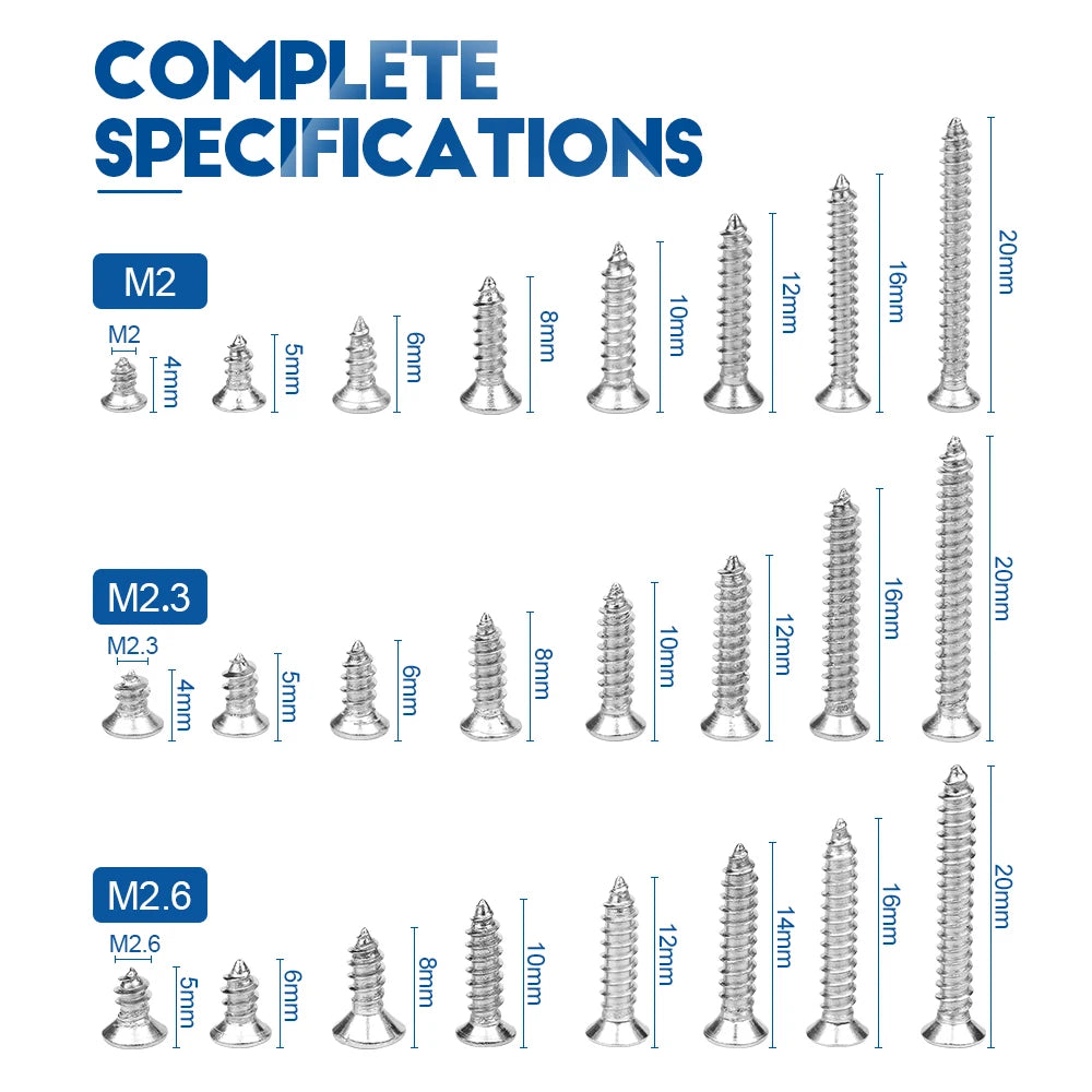 960pcs/set Cross Flat Head Micro Mini Screw Set Stainless Steel M2 M2.3 M2.6 Self Tapping Small Screw Kit for Laptop Notebook