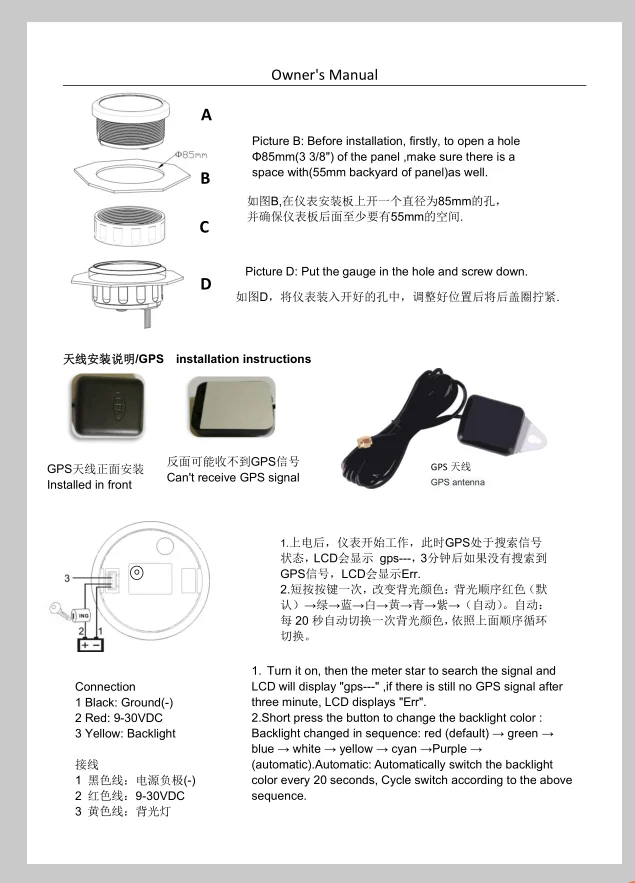 -Gauges have many kinds backlight color (red,yellow,orange,green,blue,purple,white),customers can adjust any color that you like