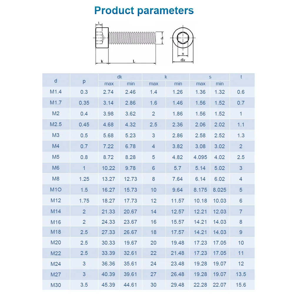 NINDEJIN 1-10pcs Hexagon Socket Head Cap Screw 201 Stainless Steel M3 M4 M5 M6 M8 M10 M12 Allen Head Bolt Without Knurled GB70