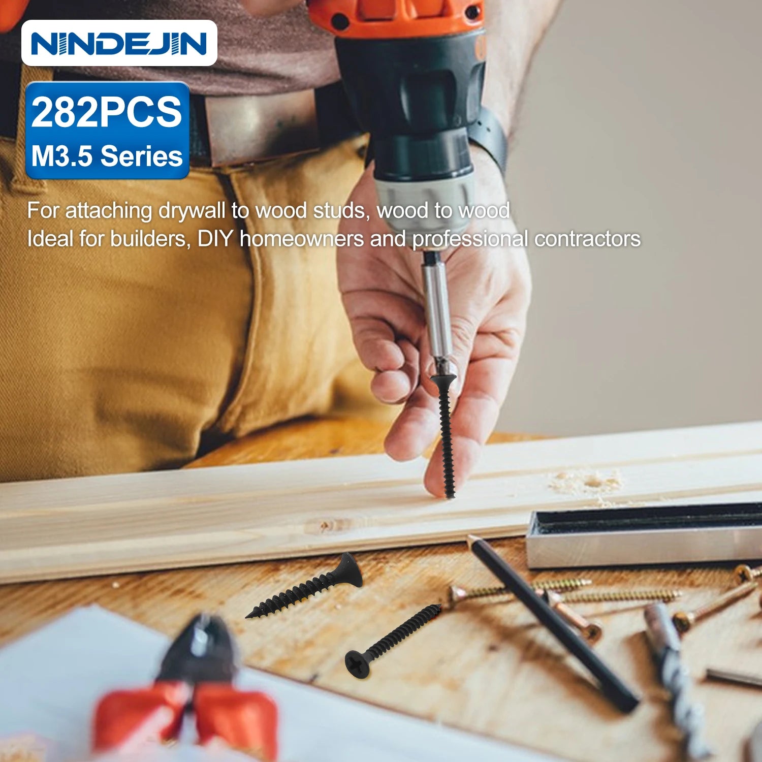 NINDEJIN 282pcs Drywall Screws Kit M3.5 Self Tapping Screws Set with Phillips Screwdriver Bits for Drywall Sheetrock, Wood
