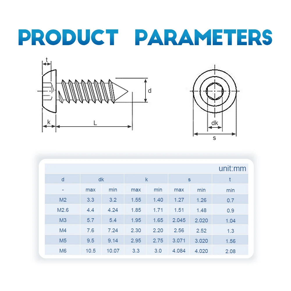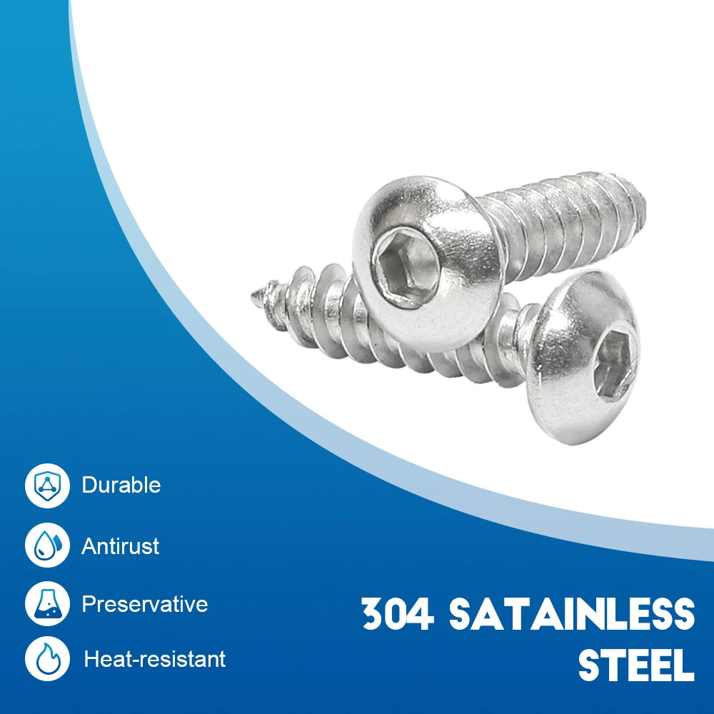NINDEJIN 5-50pcs Button Head Hex Socket Self Tapping Screw M2 M2.6 M3 M4 M5 M6 Stainless Steel Allen Head Tapping Wood Screw