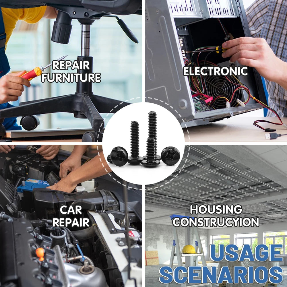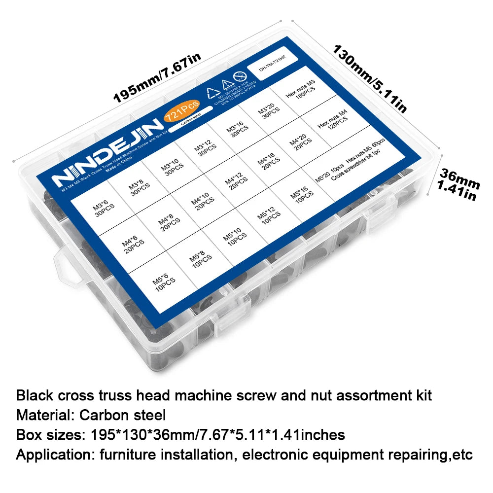 NINDEJIN 721pcs/set Cross Truss Head Screw Kit with Nut M3 M4 M5 Carbon Steel Mushroom Phillips Head Machine Screw and Nut Set