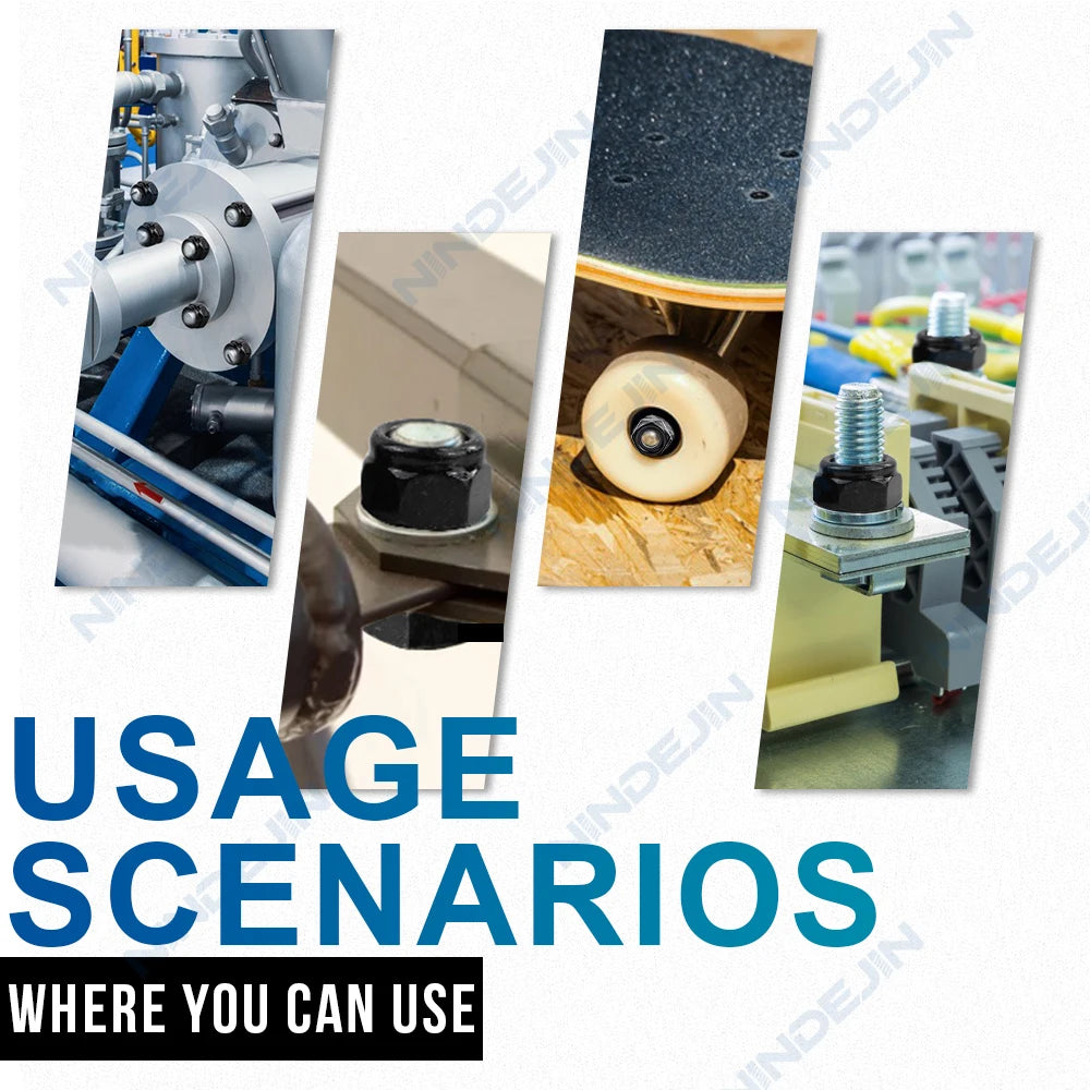 NINDEJIN black nylon lock nut 304 Stainless Steel zinc-plated Hex Hexagon self locking nut M3 M4 M5 M6 M8 M10 M12 lock nut
