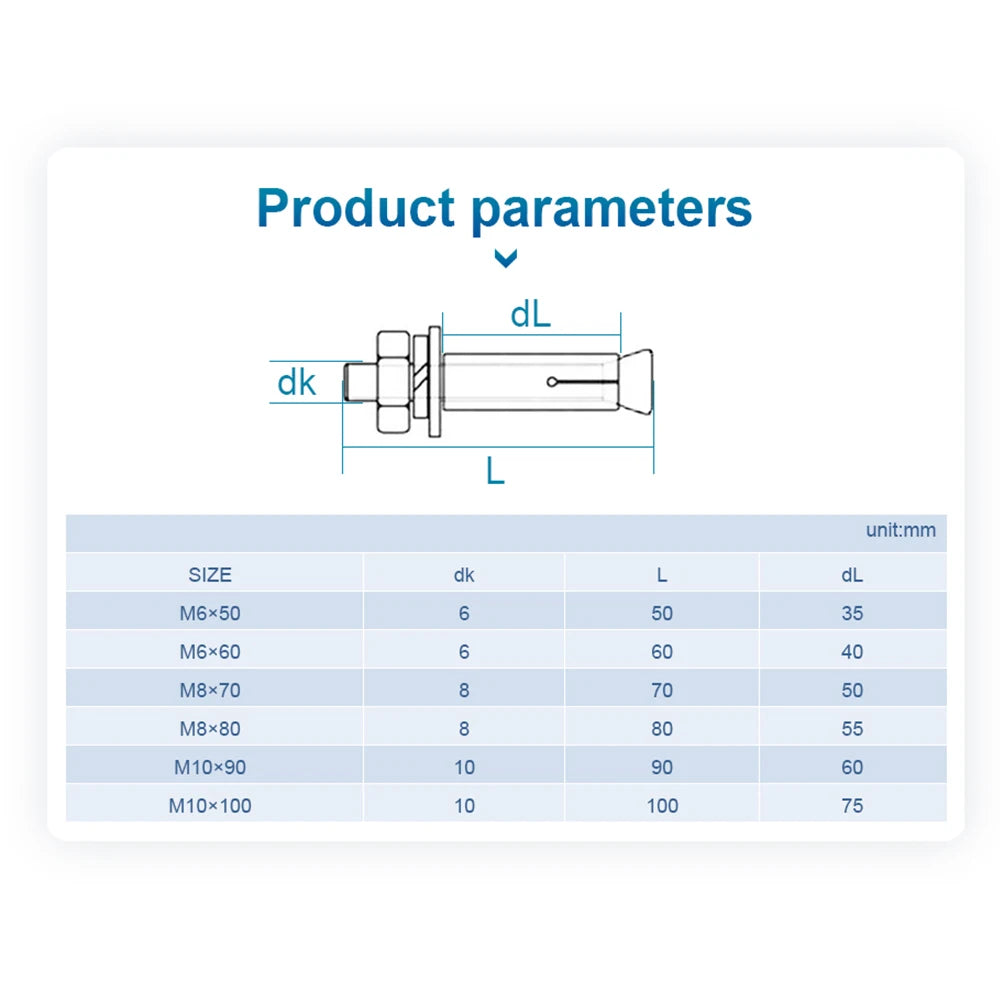 NINDEJIN External Hex Expansion Bolt M6 M8 M10 M12 M14 M16 304 Stainless Steel Expansion Screw Bolts Sleeve Anchor for Concrete