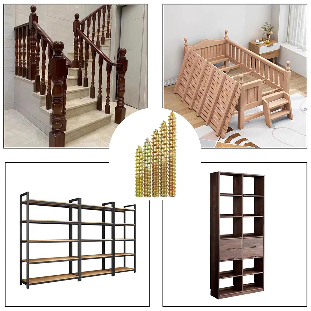 NINDEJIN Hanger Bolts Double Headed Yellow Zinc Plated M4 M5 M6 M8 M10 Dowel Screw Self-Tapping Screw for Wood Furniture