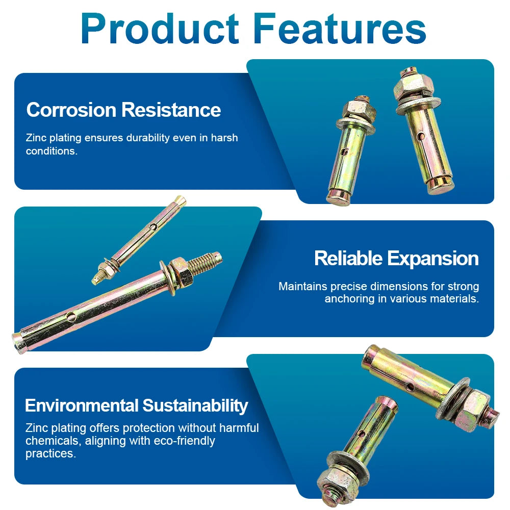 NINDEJIN Heavy Duty Expansion Bolt Anchor Yellow Zinc Plated Fix Bolts M6 M8 M10 M12 M14 M16 Sleeve Anchor for Concrete