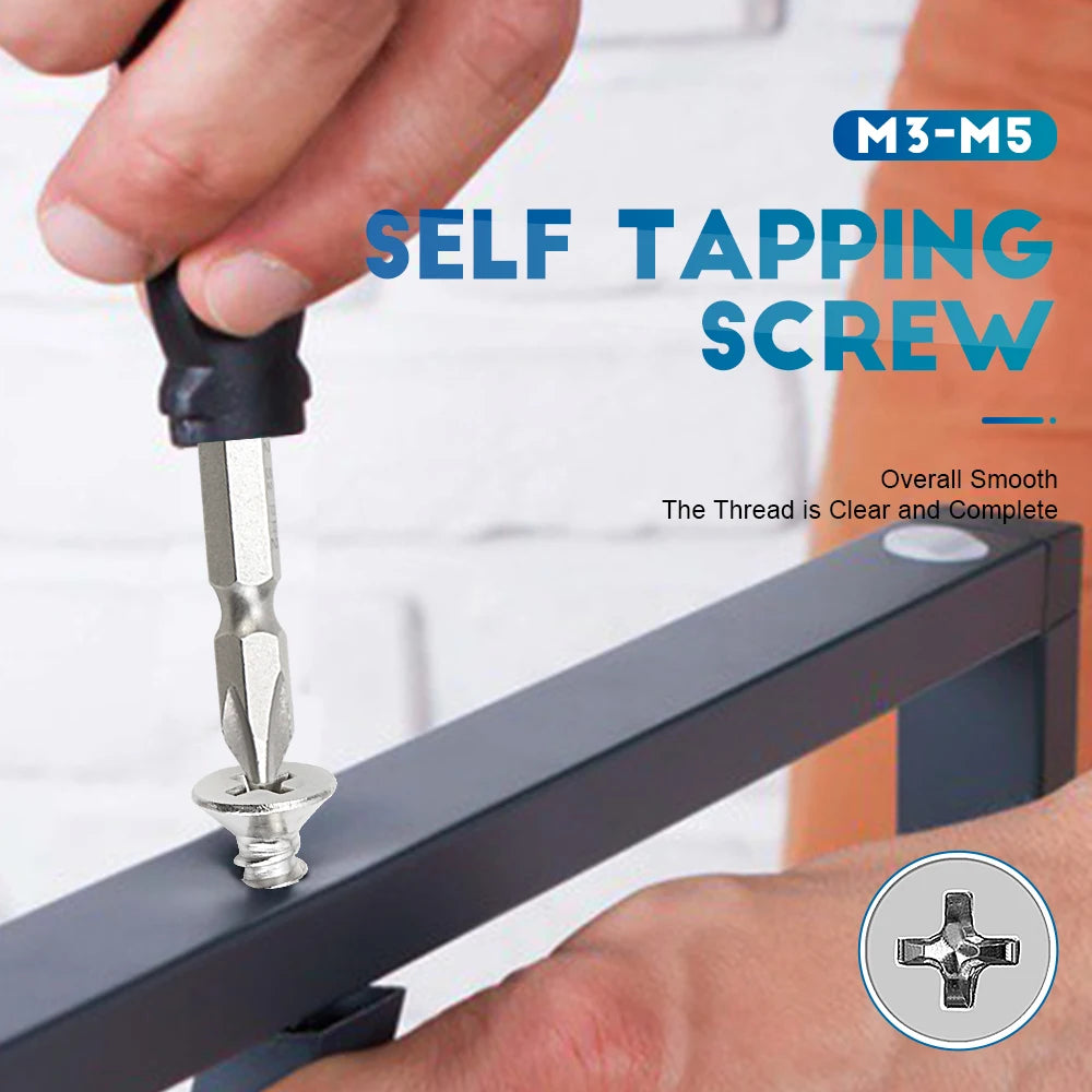 NINDEJIN Self Tapping Screw Set M3 M4 M5 Cross Flat Head Phillips Screw Assorted Kit Stainless Steel Wood Screw for metal sheet